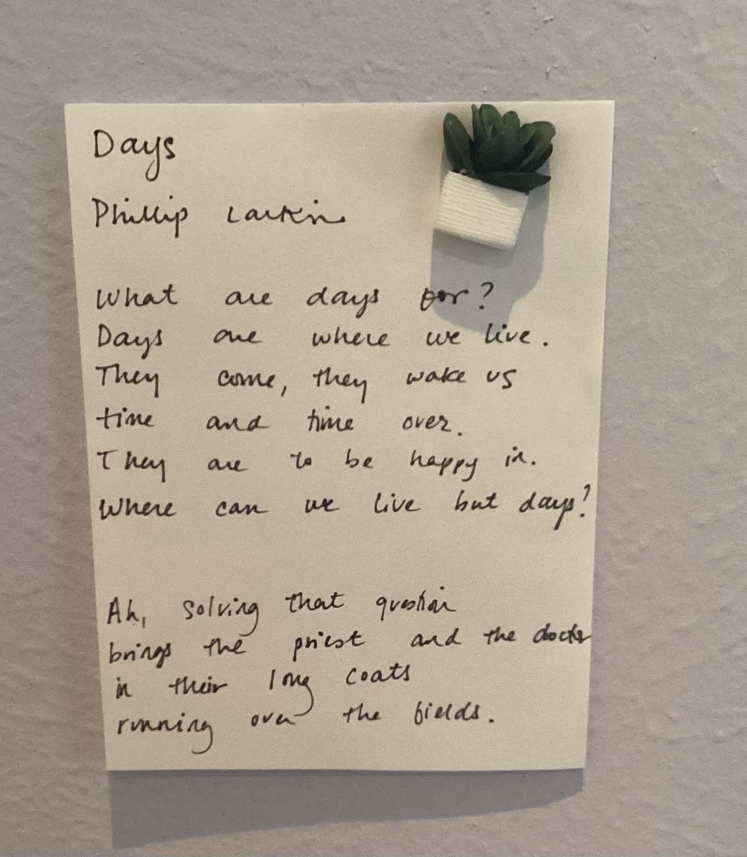 […] is Russell Edson’s “With Sincerest Regrets,” which I posted here years ago. Also, Phillip Larkin’s “Days…” and if you don’t know them, check out “This is Just to Say” by […]