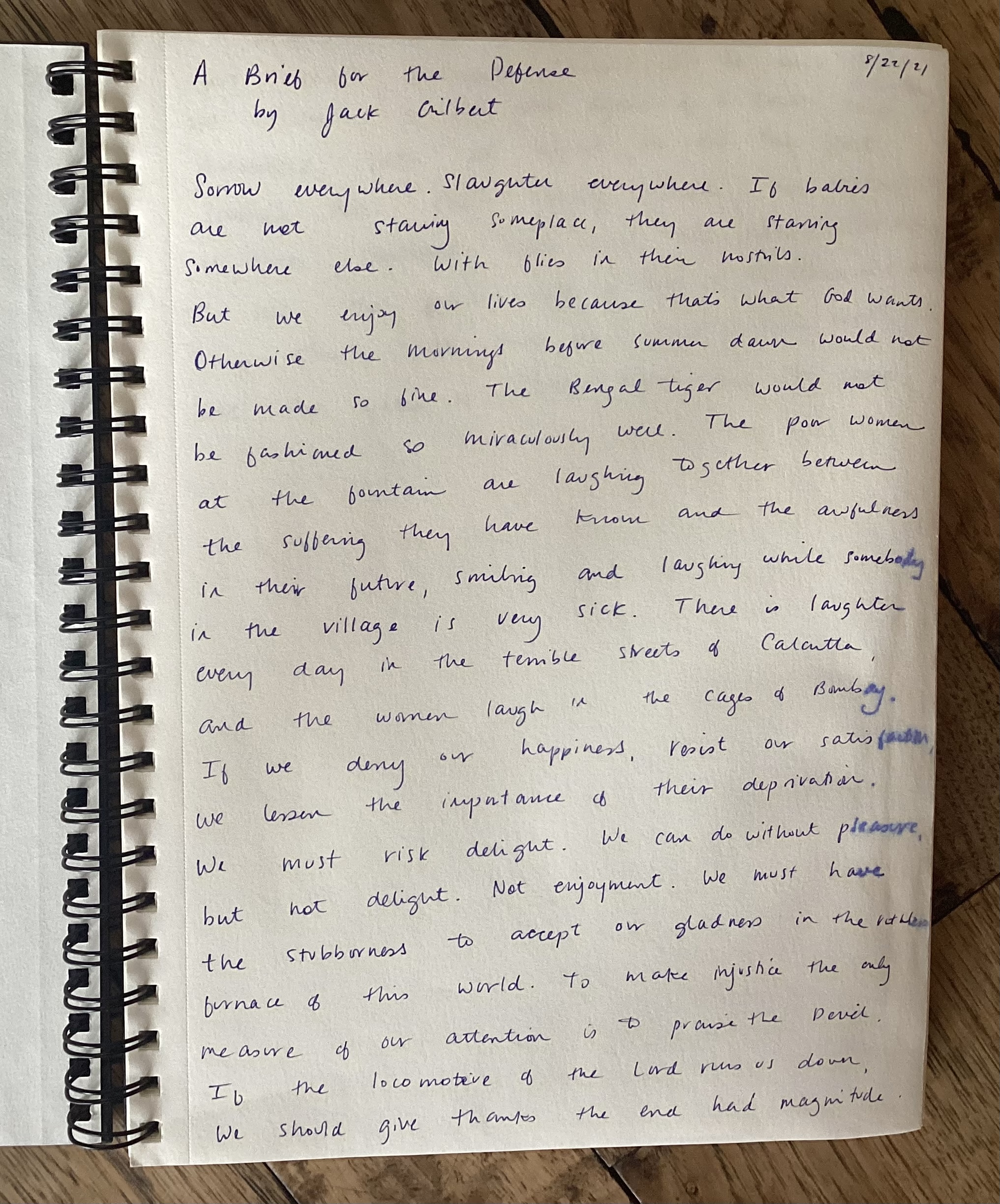 A Brief for the Defense by Jack Gilbert