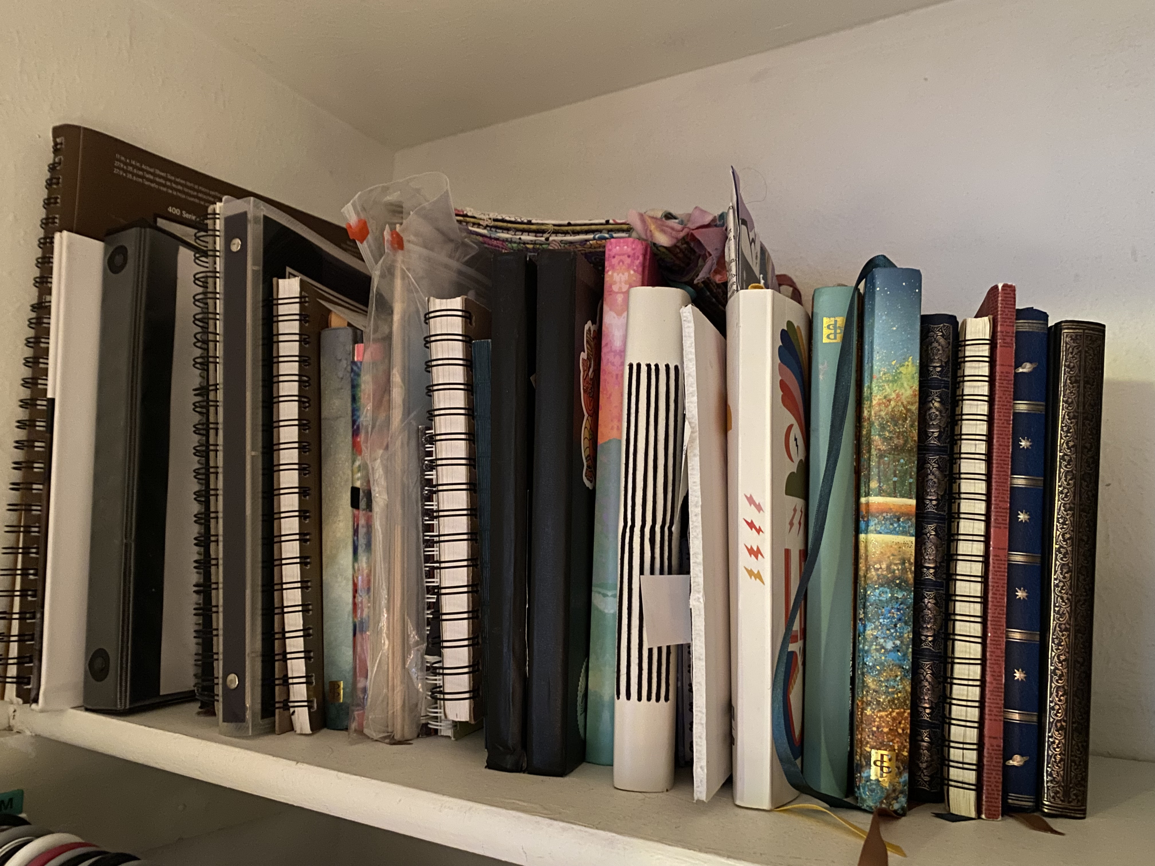We also talked about what type of notebook to use. Right now I use composition notebooks from Dollar Tree. For awhile I really liked blank sketchbooks, and long ago I used fancy hardback books. Here are some of the notebooks I’ve used over the years: